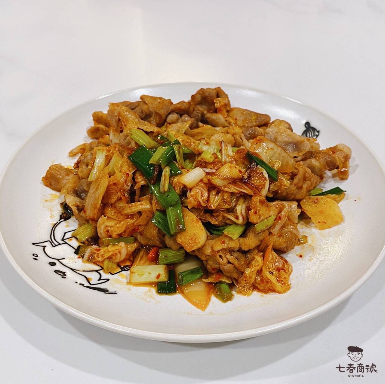 準備食材:泡菜、蒜片、蔥白、洋蔥、梅花火鍋肉片 烹調方式:爆炒 烹調難度:★★★☆☆ STEP 1:先將梅花火鍋肉片川燙,滾水下肉至八分熟起鍋備用。 STEP 2:熱鍋加入少許食用油,下蒜頭、洋蔥、蔥白炒到香味出來。 STEP 3:下梅花肉片再放泡菜,泡菜醬汁也一起歐! STEP 4:最後放入綠蔥的部分,小炒一下即可。 七春小撇步:梅花肉也可以換成Q彈的五花肉,可加入韓式年糕、泡麵等等,增加飽足感。
